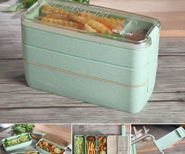 3 Layers Sub-grid Microwave Oven Lunch Box With Spoon Retro Wheat Keep Fresh Food Container