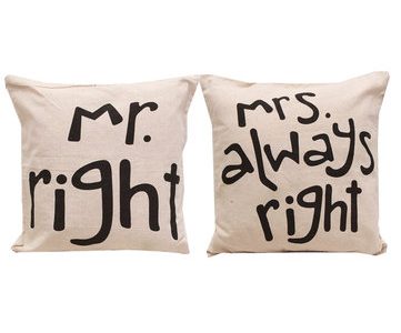 Linen Mr Mrs Right Pillow Case Couple Cushion Cover