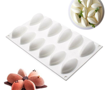 3D 12 Cavity Quenelle Shaped Silicone Mold Wine Red Mousse Cake Decorating Tool