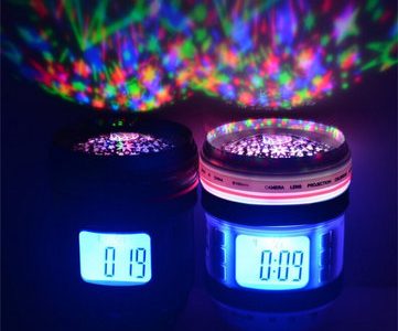 Camera Lens Alarm Clock Dynamic Starry Sky Projector Lamp Night Light With Music Rhythms Home Decor