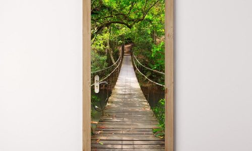 Creative 3D Suspension Bridge Door Sticker DIY Bedroom Removable Green Tree