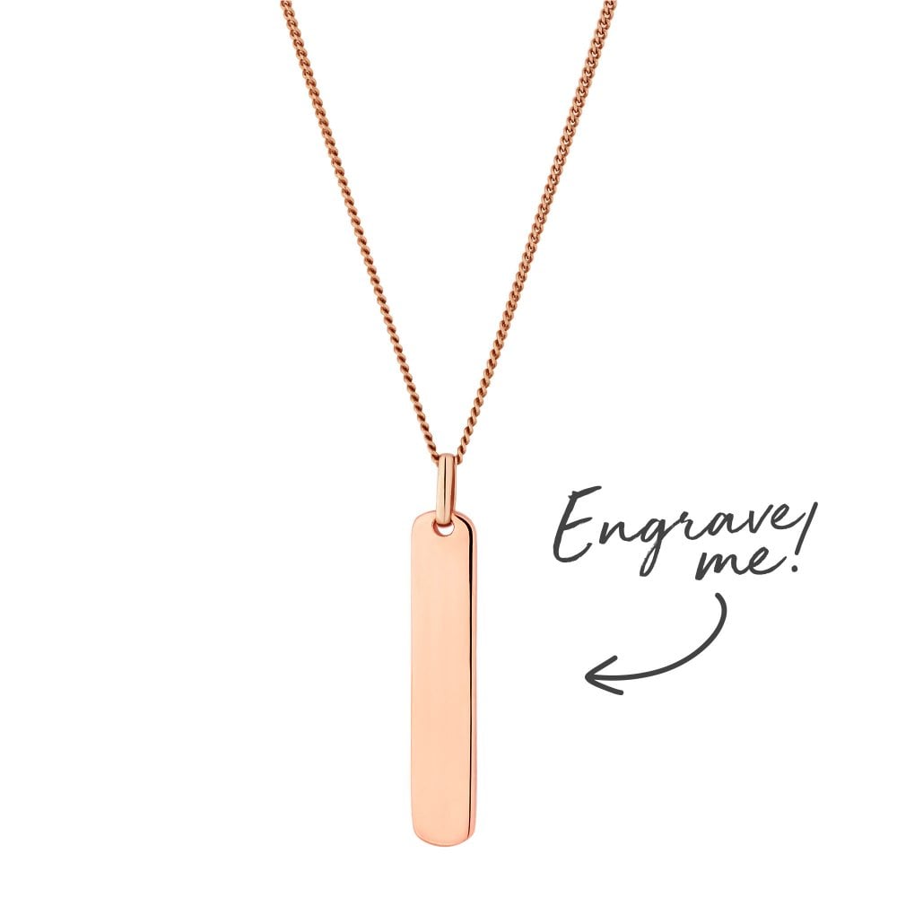 14ct Rose Gold Plated Sterling Silver 925 Vertical Bar Necklace – Personalise By Engraving