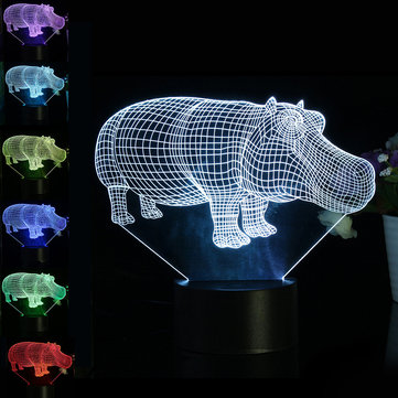 3D Hippo Desk Table Lamp 7 Color Changing LED Night Light Decor Xmas Gift