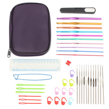 42pcs Aluminum Crochet Hooks Kit Tapestry Craft Weave Yarn Knitting Needles Sewing Tools Case