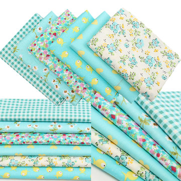 6Pcs Cyan Country Style Design Cotton Fabric DIY Household Goods Patchwork Handcraft Sewing Cloth