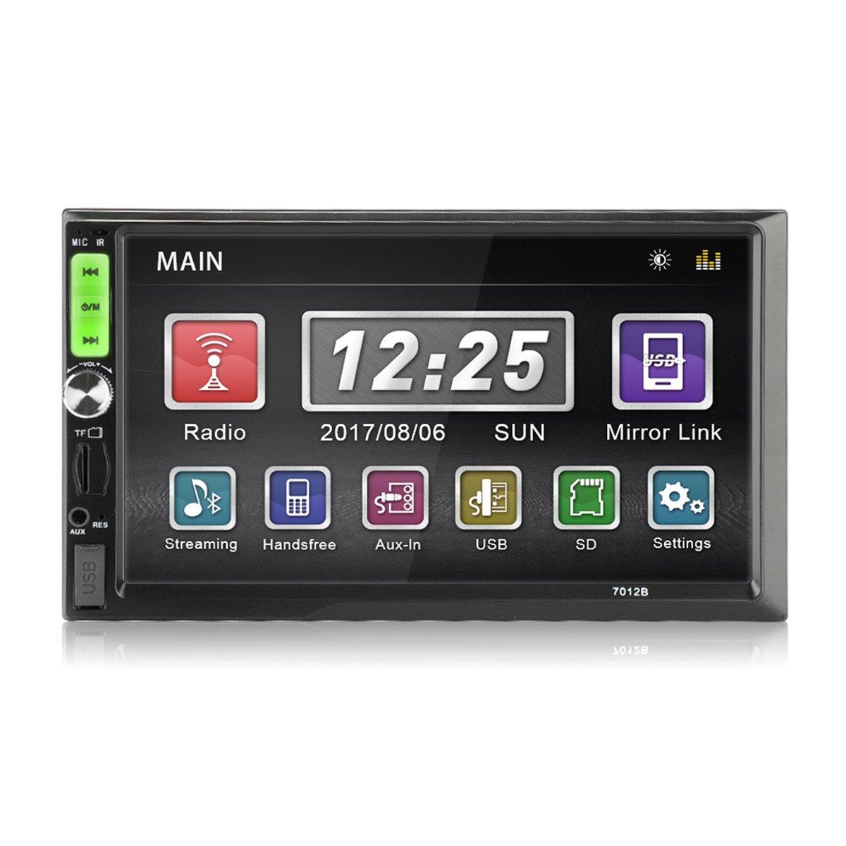 Specification:Model: 7012B-Power Supply: 12V-Unit Size: 2 DIN-Screen : 7 Inch-Resolution: 1024*600-Steering Wheel Control: Yes-Reversing Camera Input: Support-TF/SD Card: Maximum 32G-Mirror Link Screen: Support(Only support Android Phone)-bluetooth: Support-Touchable Screen: Support-Hands-free: Support-FM: SupportFunctions:Suport Touchable Screen, FM, Built-In Microphone, Steering Control, Support 1080P Video Play, Bluetooth, Hands-free, Mirror LinkScreen, Radio, Audio, MP4, MP5, DSP, EQFeatures:-Using 24Bit DAC, high-precision restores fidelity sound quality;-Support APE, FLAC, DIS lossless audio format, support high bit rate!-Support 24Bit 96KHz WAV format, music resolution exceeds CD;-Audio support playback: DIS, MP3, WMA, ACC, OGG, WAV, RA, FLAC, AC3, MP2, AMR, etc.-Video support playback: AVI, MP4, TS, ASF, FLV, PMP, RM, RMVB, MPG and other formats.-Support picture browsing function.(JPEG and other formats).-Support TF card High-speed USB 2.0 interface is compatible with various U disk.-The new processing chipset (CPU), faster response, more stable performance, more powerful!-A variety of sound adjustment (SEL): electronic volume, treble, bass, left and right balance, front and rear sound field.-Equal loudness switch, Loud reverb The bass is extraordinarily different!-Multiple sound effects selection (DSP): Decoding multiple lossless/lossy audio formats using a dedicated DSP chip;-Hardware electronic sound (EQ) processing, a variety of sound modes, high and low sounds ca