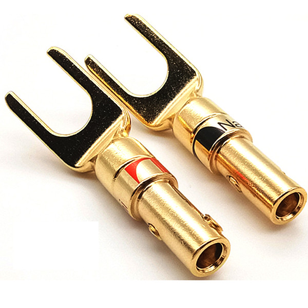 product description: condition: brand new. material: brass rear entry diameter : 4mm . spade type double screws locking, no soldering applicable for most kinds of 4mm speaker cables. gold-plated for better connecting and better transfer. color exactly the same as pictured package includes per piece: product characteristics y fork connector 4 x red + 4 x black