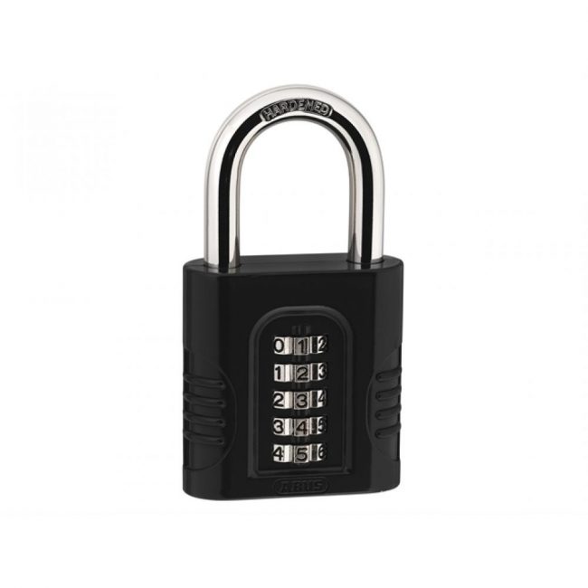 The ABUS 158 Series Combination Padlock with a solid die-cast zinc body and a hardened steel shackle. 3-digit (40mm), 4-digit (50mm), or 5-digit (65mm) resettable combination where you can set your own PIN. Ideal for medium security requirements where convenience of use is a high priority (e.g. schools, companies).The ABUS 158/65 Heavy-Duty Combination Padlock has a 5 dial resettable code with 99,999 differs. It has a double bolted hardened steel shackle, and the body is made from Zinc Die Cast. The padlock is ideal for the following applications:Factory and farm gates.Warehouse doors.Trailers.Containers. Specifications: Overall width: 63mm.Overall height: 116mm.Overall depth: 26mm. Shackle width: 31mm.Shackle height: 40mm.Shackle diameter: 10mm. Global Protection System security level: 8.