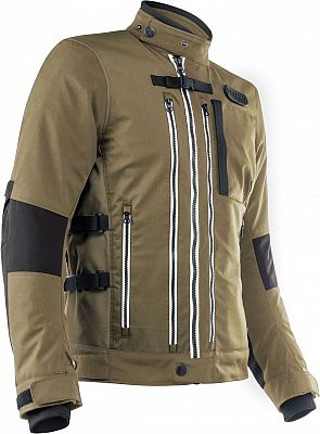 Details: Removable elbow , shoulder and back protection Waterproof jacket in 500D elastic cordura fabric with membrane (waterproofness of 15.000 mm water column, breathability of 15.000g/m2/24h) Stretch fabric inserts for optimum freedom of movement and comfort Exposed waterproof zip, front central opening Exposed waterproof zip on jacket front for: 1) ventilation 2) cargo pocket Pockets for external sleeve protection 4 external pockets, 2 internal pockets, 1 pocket in removable external padding Side adjustment by means of drawstring and rubberised buckles âM.O.L.L.E moduleâ design on back M.O.L.L.E: âModular Lightweight Load-carrying Equipment” Ottano sleeve print Ottano logo badge Internal mesh lining Removable inner jacket with mini rip stop fabric+fleece
