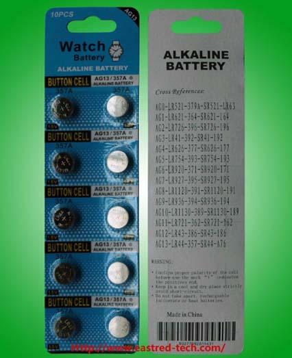 AG13 LR44 A76 1.5v Alkaline Button cells 10pcs per blister card pack 0%Hg Pb AG13