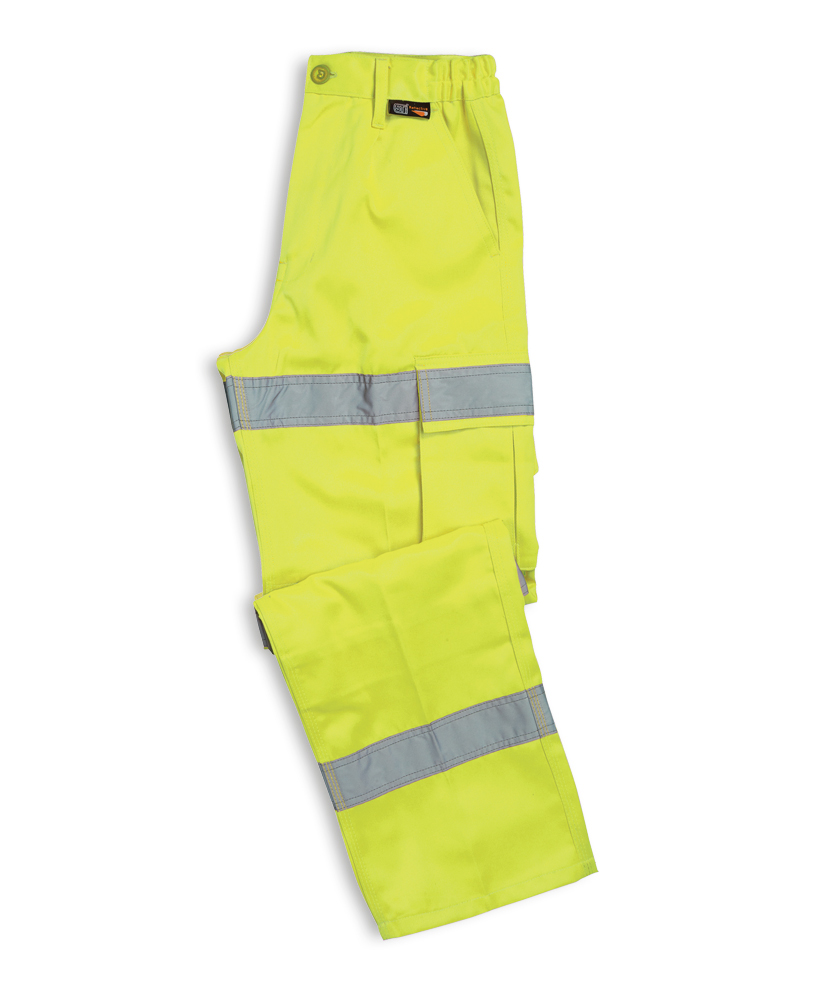 Two side and two thigh pockets with hook and loop fasteningBack zipped pocketConforms to EN471 Class 2 and GO/RT 3279 (orange only)