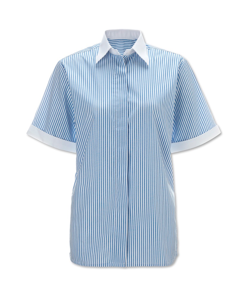 Short sleevedConcealed button frontBack length 68cmUp to 50° wash120gsm 67% polyester/33% cotton