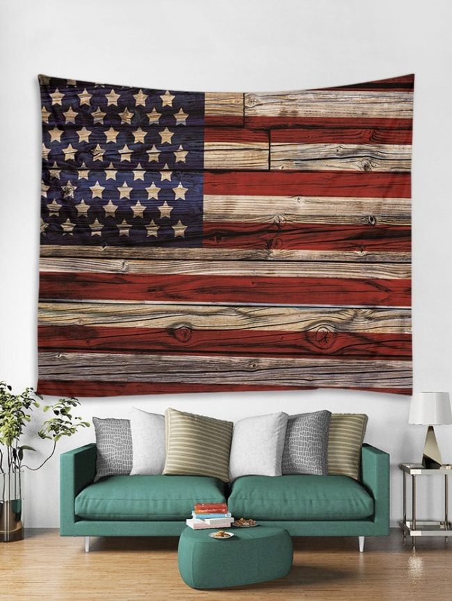 American Flag Wooden Pattern Art Decor Wall Tapestry