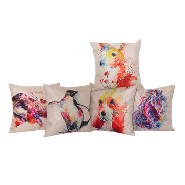 Animal Pattern Cushion Cover Linen Cat Dog For Home Decor