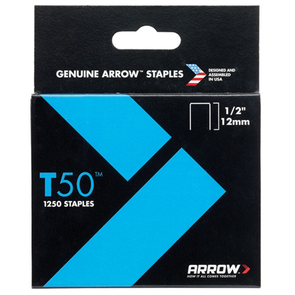 The Arrow T50 Series op quality 0.050 wire staples for T50, T55, T50PBN, HT50P (up to 12mm only), HTX50, ETFX50, ETF50PBN, CT50K, 5700 and 8000. The Arrow ARRT5014S T50 Staples Box contains top quality 0.050 wire staples for use with T50 and T55 tackers: These stapes can be used for window screens & shades, shelf papers and closet linings with the following specifications:Size: 1/4 inch / 6mmQty: 1250 staples