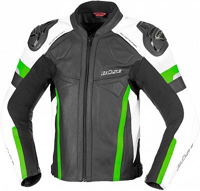 hard shell with metal inset at shoulder comfort collar with neoprene completion ergonomically adjusted cut Ventilation system on the shoulders leather stretch on elbows elastic comfort inserts on shoulders and crooks of the arm to optimize freedom of movement Adjustable waist connection zipper 2 outside pockets inner pocket