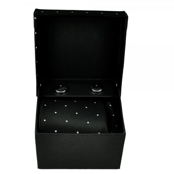 Black & White Polka Dot Men’s Tie, Hanky & Cufflinks Set High Quality Fabric Luxury Gift Box Set