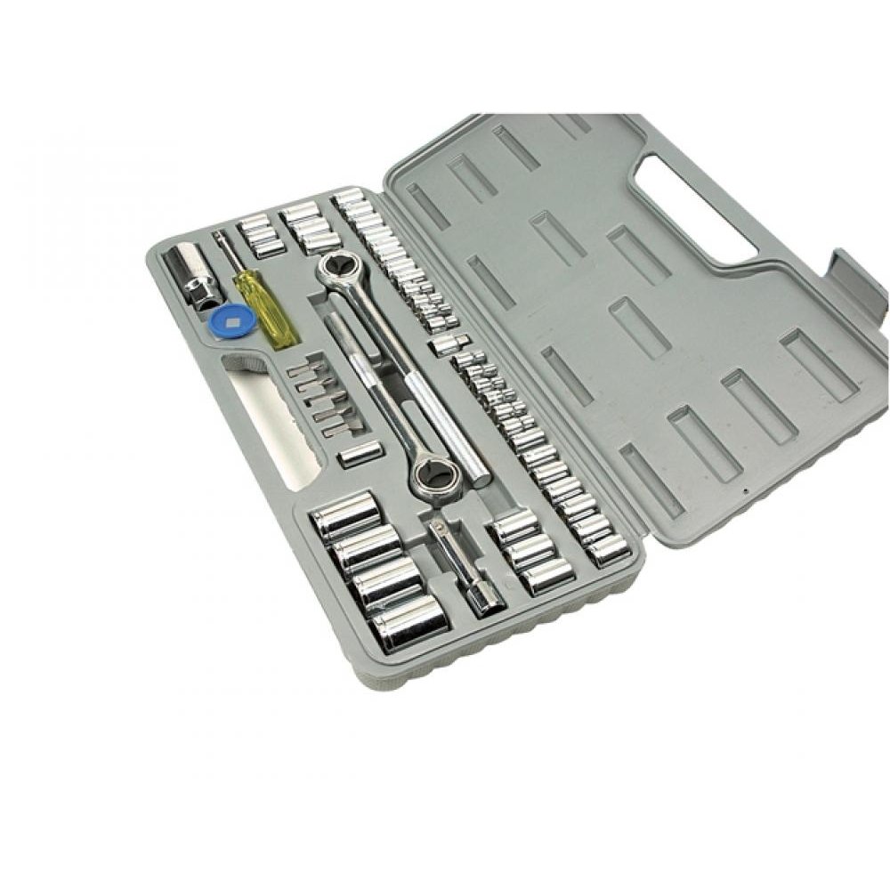 Blue Spot 01746 1/4, 3/8 and 1/2 in Drive metric and AF socket set 52 piece consisting of:-12 x 1/4 Hex sockets 5/32, 3/16, 7/32, 1/4, 9/32, 5/16, 11/32, 3/8, 13/32, 7/16, 15/32 and 1/2 AF.13 x 1/4 Hex sockets 4, 4.5, 5, 5.5, 6, 6.5, 7, 8, 9, 10, 11, 12 and 13mm.3 x 1/4 8 Pt sockets 1/4, 5/16 and 3/8 in1 x 1/4 Spinner handle1 x 1/4 to 3/8 Adaptor1 x 1/4 Hex bit holder3 x 1/4 Hex Phillips screwdriver bits PH1, PH2 and PH3.2 x 1/4 Hex Slotted screwdriver 3/16 and 9/32 in.3 x 3/8 Hex sockets 7/16, 9/16 and 1/2 AF3 X 3/8 Hex sockets 11, 12 and 13mm 1 x 3/8 Reversible ratchet handle.1 x 3/8 Extension bar 3 in1 x 3/8 Spin disc1 x 3/8 Spark plug socket 13/16 in.4 x 1/2 Hex sockets 5/8, 11/16, 3/4 and 13/16 AF.1 x 1/2 Reversible ratchet handle 1 x Moulded case.