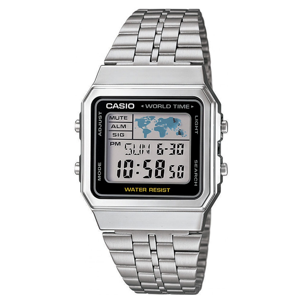 Technical SpecificationsLED lightA light-emitting diode (LED) is used to illuminate the watch face.World time functionDisplays the current time in major cities and specific areas around the world.4 time zones displayLocal times can be called up quickly and easily for four different time zones.Stopwatch function – 1/100 sec. – 24 hoursElapsed time, split time and final time are measured with 1/100-sec accuracy. The watch can measure times of up to 24 hours.Timer – 1/1 sec. – 24 hoursFor fans of precision: the countdown timers help you to remember specific or recurring events by giving off an audible signal at a preset time. They The time can be set to the nearest second and up to 24 hours in advance.5 daily alarmsThe daily alarm reminds you about recurring events with an acoustic signal at the time you have set. This model has 5 independent alarms for flexible reminders of important appointments.Button tones on/offThe button tones for using the mode button can be turned off. This means that the watch no longer beeps when switching from one function to another. Preset alarm or countdown timers remain active when the button tones are deactivated.Automatic calendar with Date, Day and MonthOnce set, the automatic calendar always displays the correct date.12/24-hour timekeepingTimes can be displayed in either a 12-hour or 24-hour format.Acrylic GlassStainless steel bandTough, durable and elegant: The stainless steel wrist strap gives your watch that classic feel.Adjustable fasteningThe clasp can be individually adjusted extremely easily for maximum comfort.3 Years – 1 BatteryThe battery supplies the watch with sufficient energy for approx. three years.Water resistance classification (WR) to ISO 22810This model is water resistant to DIN 8310 / ISO 22810, and thus is resistant to minor splashing. Any greater water contact should be avoided.Dimensions (H x W x D)39,0mm x 34,0mm x 9,6mmWeightapprox. 50,0 g