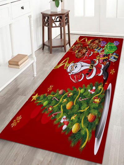 Christmas Tree Santa Baubles Pattern Water Absorption Area Rug