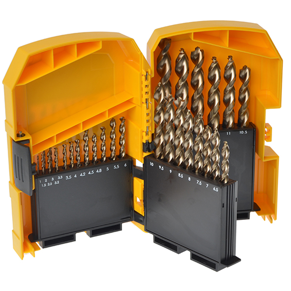 The DEWALT 29 Piece Extreme 2 Metal Drill Bit Set have a specially designed tip which starts on contact for clean, accurate holes and reduces lock up on breakthrough. They also have a tapered web which provides greater durability to reduce breaking. Size markings are located above the shank to prevent wearing away and the bits also incorporate a no spin shank that eliminates the frustration of the bit spinning in the chuck. Contains: Sizes: 1, 1.5, 2, 2.5, 3, 3.2, 3.3, 3.5, 4, 4.2, 4.5, 4.8, 5, 5.5, 6, 6.5, 7, 7.5, 8, 8.5, 9, 9.5, 10, 10.5, 11, 11.5, 12, 12.5 and 13mm.