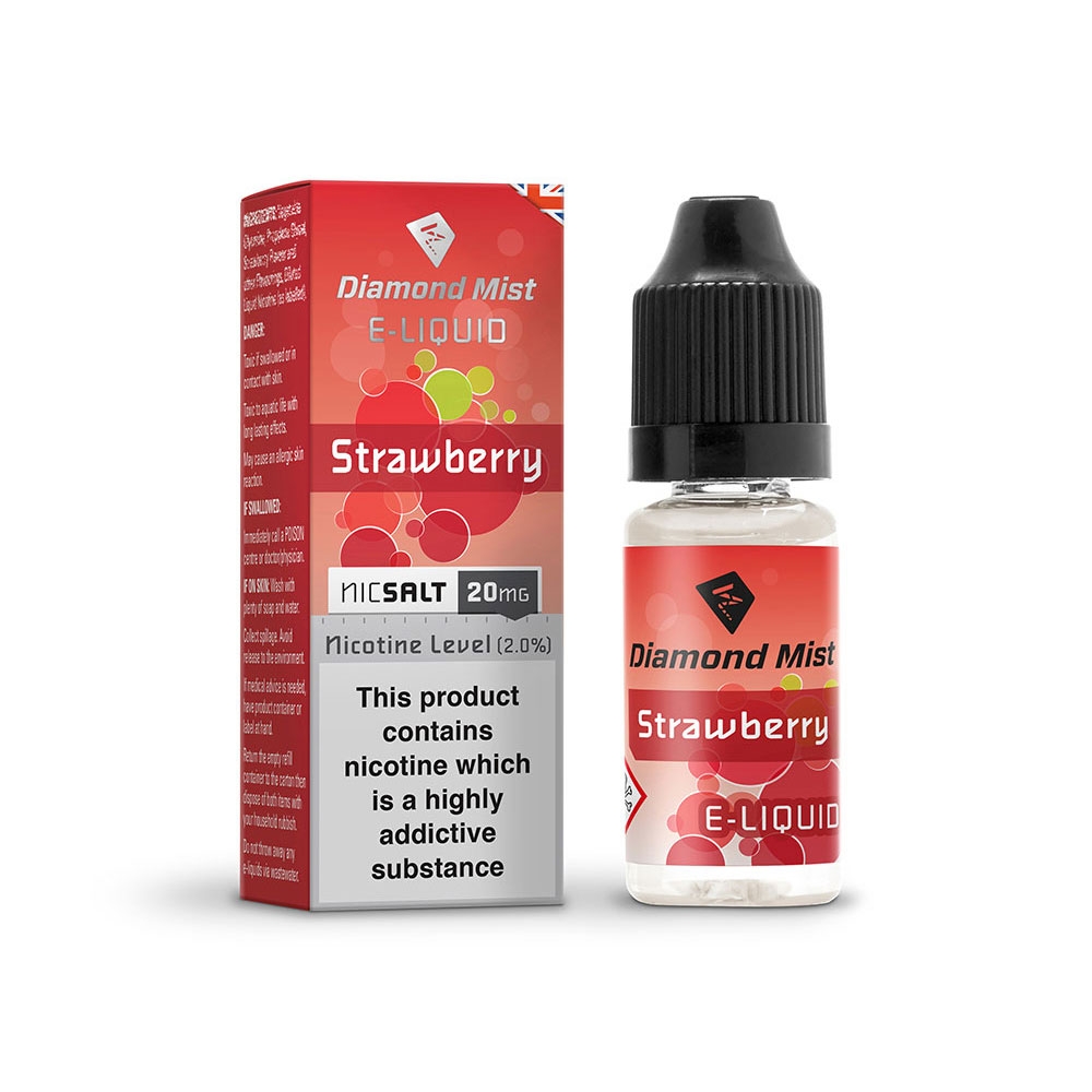 Salt E-Liquids are a salt-base nicotine E-Liquid (also known as Nic Salt) that captures the natural salts found in the tobacco leaf to produce a smooth vape without any harsh throat hit. This allows the nicotine to be absorbed quicker into the body to give the user a more natural rush, similar to that experienced through a traditional cigarette. Vaping Salt E-Liquids at 20mg will be much smoother than using an equivalent strength e-Liquid that contains standard nicotine. Note – Nic Salt E-liquids Don’t taste of salt.Diamond Mist offer market leading E-Liquid ranges that allow users to buy ready-to-use flavoured E-Liquid, with or without nicotine. E-Cigarettes require E-Liquid to produce the inhaled vapour. The E-Liquid is a simple solution that contains the following three components: Nicotine – is the stimulant and addictive substance in cigarettes. Diamond Mist offers a range of strengths of nicotine Flavouring – Nicotine has no distinct taste but the addition of E-Liquid flavour results in the unbeatable diamond aroma. Diamond Mist is the manufacturer of some of the finest tasting and highest quality E-Liquid flavourings. Diamond Mist use only the finest quality sourced flavours and offer to its consumers the widest and most sensual range. Reagent – This essentially dilutes the mixture of nicotine and flavours to the correct strength, and it further aids the production of vapour that is inhaled and carries both the flavour and nicotine from the electronic cigarette to the user. The common ingredients of the reagents are: Propylene Glycol (PG) – This is the primary ingredient which produces the smoke like vapour which the electronic cigarette is exhaled. Vegetable Glycerine (VG) – Viscous and sweet, producing a larger smoke like vapour when the electronic cigarette is exhaled but with a reduced throat hit than PG. Every bottle of E-Liquid will have its ingredients printed on the label along with a use-by date. All industry standard warning labels are included indicating the nature of the product, child proof caps as well as raised tactile warning labels for the visually impaired. Diamond Mist only produce Pharmaceutical Grade Eliquid, EU TPD Approved and UK Made When making this switch, many new users do not know which nicotine strength is best suited to them. But this need not be so confusing. The chart below will help you determine which strength to start with in order to find your level of suitability. (mg per 10ml) 0mg no nicotine Those who want to enjoy the flavour but without any nicotine. 3mg Ultra Low, for people who wish to enjoy the smallest possible nicotine level while still enjoying a full E-Liquid taste. 6mg Low, for people who wish to enjoy the smallest possible nicotine level while still enjoying a full E-Liquid taste. 12mg Medium, for people who prefer nicotine, but aren’t heavy vapers. This level is also common for people who used to smoke light cigarettes. 18mg Strong, Most vapers who were former smokers enjoy this