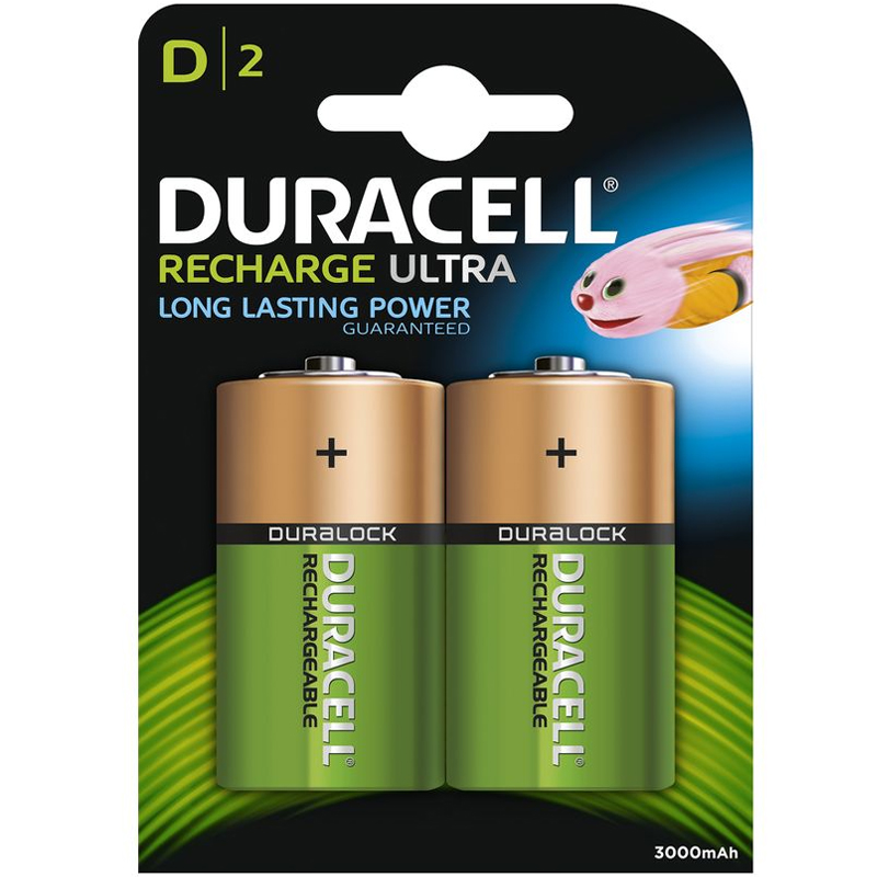 2 x Duracell Recharge Ultra 3000mAh D HR20 1.2v Rechargeable Batteries