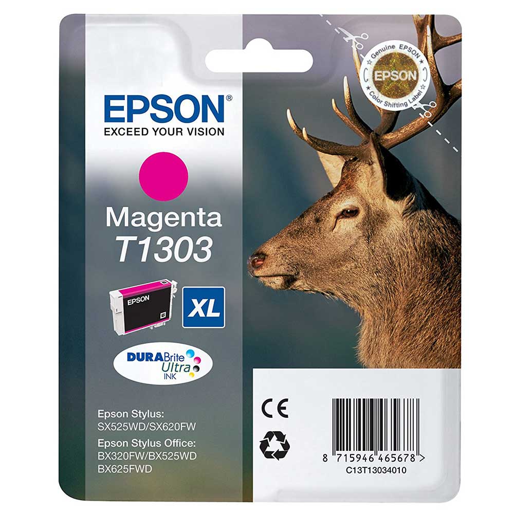 Whether creating web pages, office documents or school projects, Epson DURABrite Ink is ideal. As it is resistant to both water and smudging, it’s the perfect ink for printing glossy, lab-quality photos.Colour: Extra High Capacity MagentaCapacity: 10.1mlPage yield: Approx. 765 pages @ 5% average coverage Printers compatible with this Stag ink: Epson Stylus Office B42WDEpson Stylus Office BX320FWEpson Stylus Office BX525WDEpson Stylus Office BX535WDEpson Stylus Office BX625FWDEpson Stylus Office BX630FWEpson Stylus Office BX635FWDEpson Stylus Office BX925FWDEpson Stylus Office BX935FWDEpson Stylus SX525WDEpson Stylus SX535WDEpson Stylus SX620FWEpson WorkForce WF-3010DWEpson WorkForce WF-3520DWFEpson WorkForce WF-3530DTWFEpson WorkForce WF-3540DTWF Epson WorkForce WF-7015Epson WorkForce WF-7515Epson WorkForce WF-7525