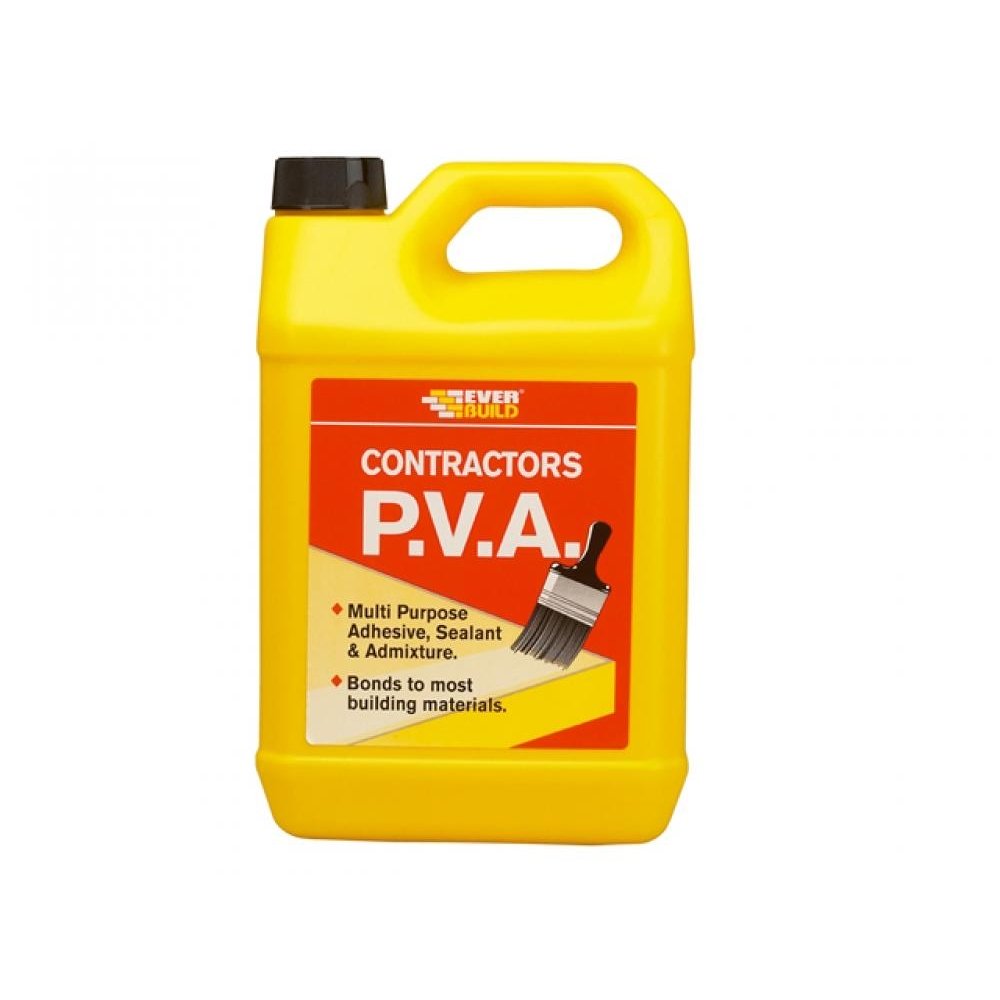 Contractor’s PVA is a multi-purpose agent, primer sealer, cement filler and plaster admixture that adheres to most common building and DIY materials except PVC and rubber. Ideal for priming unsound surfaces prior to plastering or painting, as an adhesive on wood, cork, textiles and most applications where at least one surface is porous, for general dust sealing on flaking paintwork/walls etc. and as a cement admixture. NOTE – for areas subject to constant damp, use Everbuild SBR Bond which is water resistant.