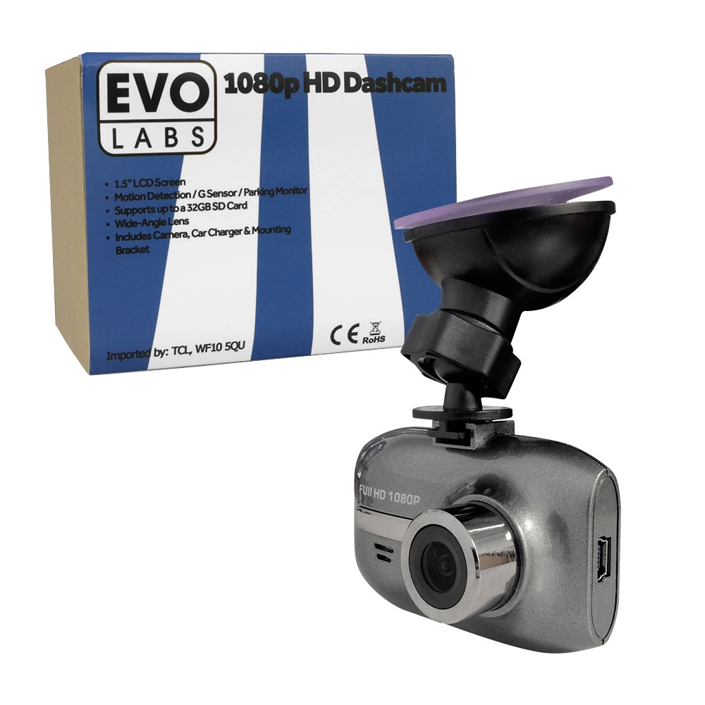 The Evo Labs C200 1080p HD Dashcam car video recorder. Produces a crisp high definition image with a wide-angle lens. Record your journeys so that in the event of an accident that wasn’t your fault, you can prove to police/insurance companies with video footage from the Dashcam. The camera loop records in video with lengths of a few minutes until the memory card is full. It then over-writes the oldest videos first so you will always have a log of your recent journeys which can be viewed either on the camera or by putting the SD card in a card reader. Camera Features -Wide angle lens -720p and 1080p recording options -Records audio -Up to 3 minute video segments (after 3 minutes a new segment will start) -Video Date Stamping to prove time and date of incidents -Motion detection – if the car moves or is hit when parked, the sensor in the camera will switch on recording -1.5 inch screen -Extremely compact camera, will fit very discreetly to your windscreen G sensor feature: the dash camera will detect a sudden change in direction. This could be caused by hard braking, impact from crashing, or even movement when stationary i.e. someone rocking the vehicle. When a dash camera detects this change in direction it will automatically switch to ‘event mode’ and save the current segment of footage in a protected section of memory. Please note Use only original class 10 TF/SD cards Ensure camera is connected to car power via the car charger (will not work for long periods on battery power) Disable motion detection & parking monitor when driving For your own safety, do not operate the Dashcam while driving. Never place the Dashcam where the driver’s view or deployment of airbags is obstructed. Do not mount the Dashcam on a tinted window to prevent damage to the tint film. Mount the Dashcam within the range of the windshield wipers to ensure clear visibility in rain. If the lighter socket in your car continues to provide power after the engine is switched off, unplug the Dashcam when the engine is off or idling to reduce unnecessary power consumption and prevent any unexpected problems. Whats in the package -HD Dashcam with 1.25″ LCD Screen with settings and recording controls -Extra long 3.3M power cable which plugs into any standard 12V lighter socket / cigar socket / power outlet -Windscreen suction mount -Slot for MicroSD memory cards – accepts up to a 32GB MicroSD Memory Card