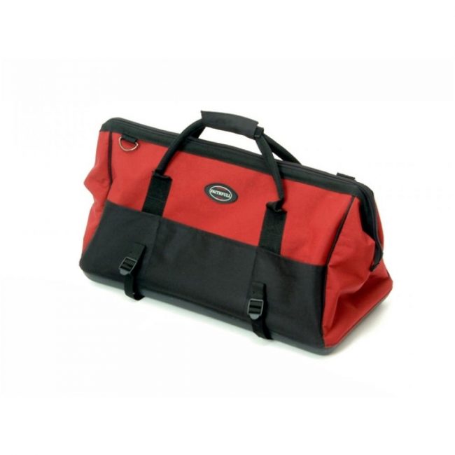 Made from heavy-duty polyester with a reinforced back and featuring a wide top opening and hard base. The bag has side pockets, is reinforced with a metal frame for stability and strength and features a heavy-duty zip.1 x Faithfull Hard Base Tool Bag 61cm (24in).