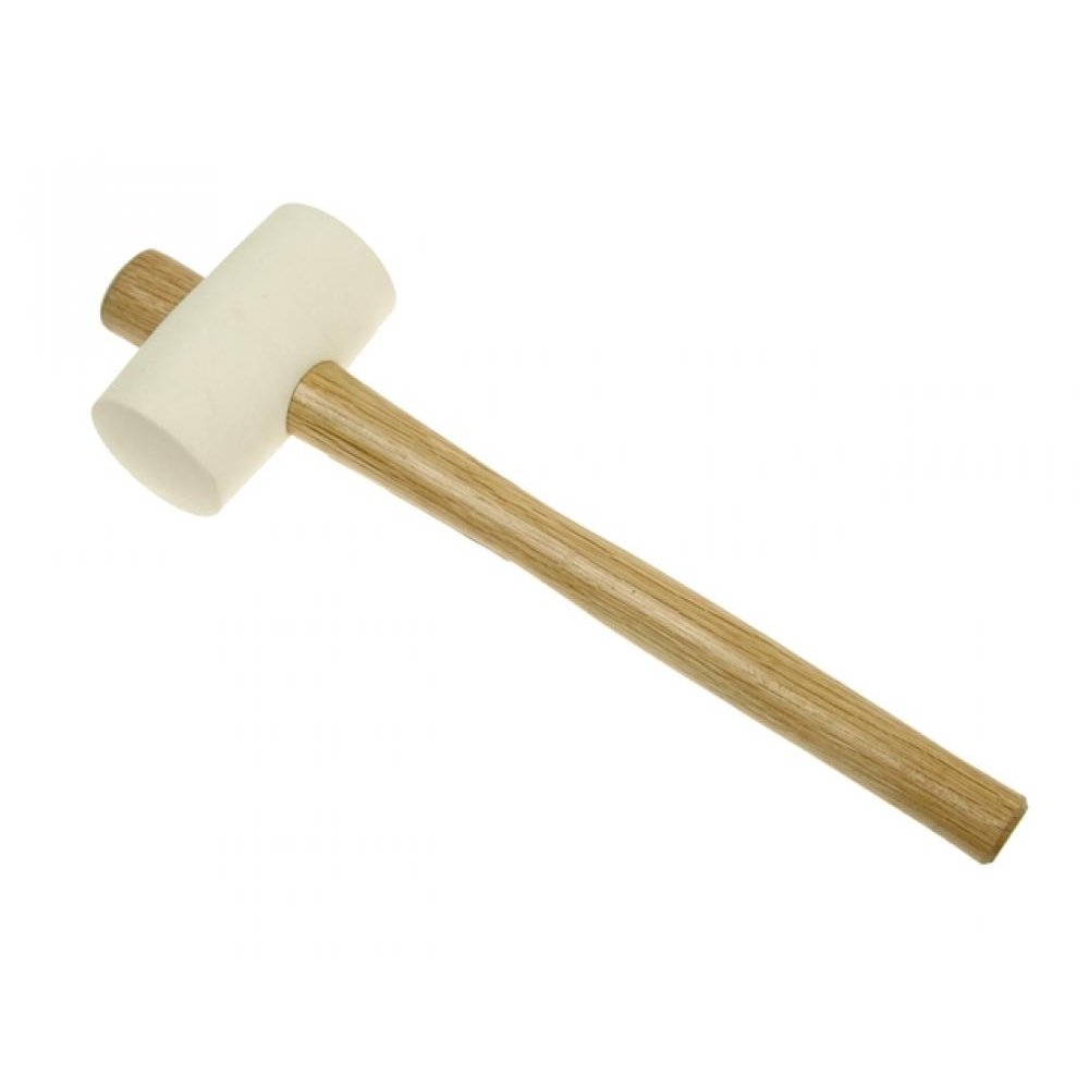 All purpose rubber mallet, used by professional tradesmen in the automotive industry and in maintenance workshops. Also suitable for DIY tasks and applications where a steel head is unsuitable. Featuring self-locking handles to deliver a gentle but firm blow with little rebound. The wooden handle is contoured to provide a comfortable grip during use.Colour : White.Size : 57mm (2.1/4in).Weight : 567g (20oz).Face : 57 mm.