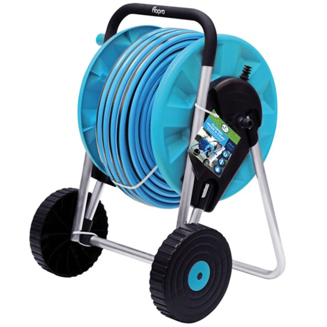 The Flopro Hose Cart has a rust-resistant aluminium frame with comfortable grip handles. It is designed to ensure that the hose does not twist or kink when winding. The cart conveniently folds for easy transportation and storage. It is supplied with the following: 1 x 25m Flopro hose, 12.5mm (1/2in) diameter.1 x Tap Connector.1 x Hose Connector.1 x Water Stop Hose Connector.1 x Watering Nozzle. The Flopro hose has a 10 year guarantee.