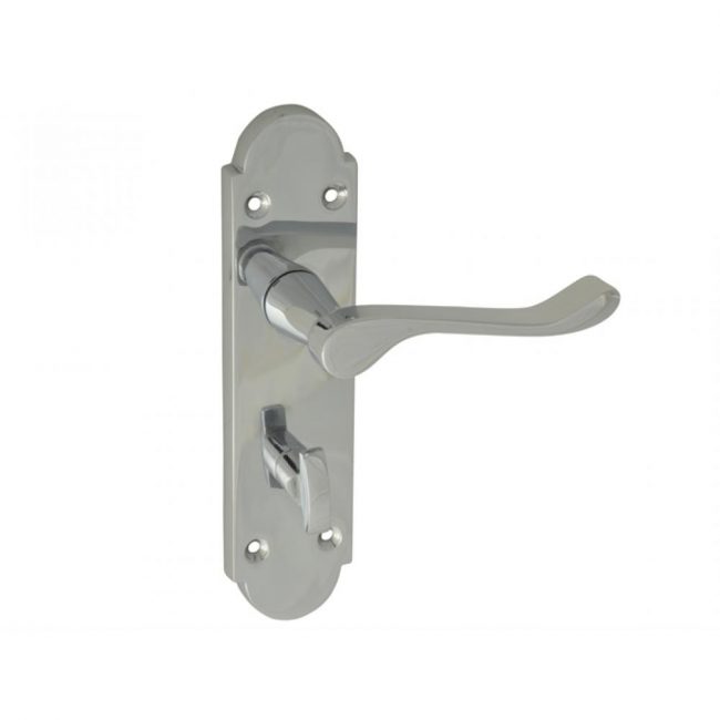 The Forge range of Gable Handles incorporates a traditional backplate style with a scroll handle. The sprung handles have a lasting finish. They are ideal for internal or external use as the handles have been tested for corrosion resistance and cycle tested beyond 100,000 uses. Supplied with screws and fitting instructions. Product Dimensions:Backplate: 170 x 42mm.Handle: 55 x 93mm. Fitting Instructions:1. Place the spindle bar through an existing tubular latch or lock and position one handle over the spindle bar. Ensuring the handle is square, mark the screw hole positions with a bradawl.2. Drill Ø2mm pilot holes and reposition the handle before securing using the wood screws provided.3. If fitting Bathroom handles, now insert the bathroom spindle bar through the deadbolt hole of the lock from the outside of the door and place the thumbturn onto the spindle bar. Tighten the grubscrew on the underside with the hex key provided.Designed to be used with a mortice bathroom lock with centres of 57mm. The thumbturn includes emergency access from the shut side with a coin or screwdriver. Finish: Chrome.