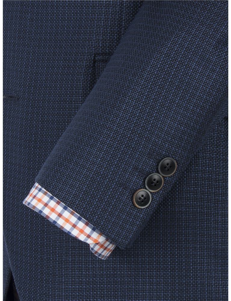 Be subtle yet different in this blue basket weave jacket featuring bold floral lining and a removable dragonfly lapel pin Team with matching waistcoat or keep it simple with a crisp shirt