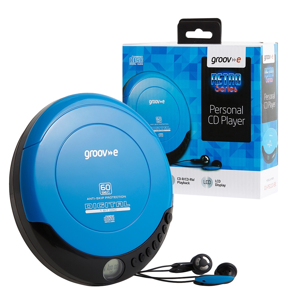 The Groov-e Personal CD Player will take you back to the 90s and give you the perfect excuse to listen to some golden oldies.The classic LCD display and control buttons are just how they used to be – allowing you to skip and search through your favourite songs. The Anti-Skip Protection feature also prevents the music from jumping whilst you’re on the move.Further functions include a battery indicator and a 20-track programmable memory. A pair of earphones are also included to get your started immediately!The Groov-e Personal CD Player supports CD, CD-R and CD/RW playback and requires 2x AA batteries or micro USB 5V DC power input (mains adaptor not included).