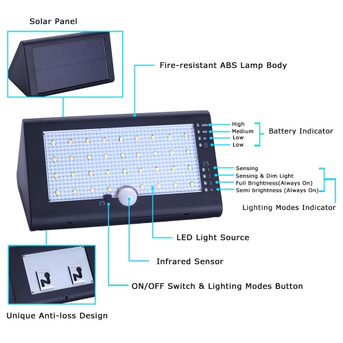 4 LIGHTING MODES: PIR / PIR dim light / Always on (full brightness) / Always on(half brightness), 4 lighting modes to choose under different situations, very flexible.