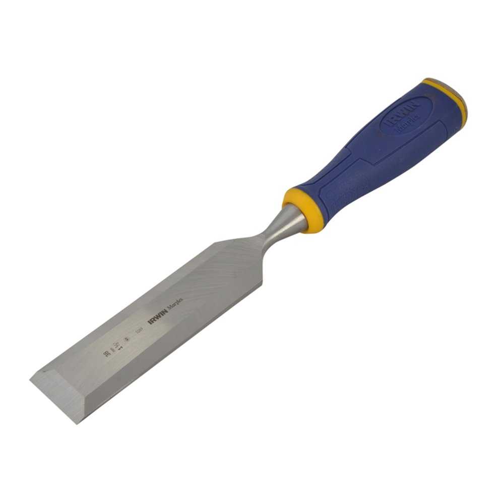 The IRWIN Marples MS500 Series All-Purpose Chisels with ProTouch Handle. These chisels have a large metal striking cap to withstand hammer impacts, prolong the life of the handle, and prevent mushrooming. ProTouch handles are designed to provide extra comfort, grip, and also reduces vibrations and reduces hand fatigue. One-piece blade forging gives added strength and durability. Made from special tool steel which ensures a much sharper cutting edge for quicker and easier operation. A special hardening process gives the blade a longer lasting edge – less time spent re-sharpening. The blade is hardened to the last inch giving more working chisel for your money. Every chisel is honed and sharpened ready for use out of the packet – to save you time and effort. Avalible in the following sizes: MARS50014: 6mm (1/4in).MARS50038: 10mm (3/8in).MARS50012: 12mm (1/2in).MARS50058: 16mm (5/8in).MARS50034: 19mm (3/4in).MARS5001: 25mm (1in).MARS500114: 32mm (1 1/4in).MARS500112: 38mm (1 1/2in).MARS5002: 50mm (2in). The following sets: MARS500S3: 12, 19,and 25mm (1/2, 3/4 and 1 in)MARS500S3SS: 13, 19 and 25mm (1/2, 3/4, and 1in) (sharping kit inculded). MARS500S5W: 6, 10, 12, 19, & 25mm (1/4, 3/8, 1/2, 3/4, and 1in)MARS500S6: 6, 10, 12, 19, 25, & 32mm (1/4, 3/8, 1/2, 3/4, 1 & 1 1/4 in).1 x Marples MS500 Series All-Purpose Chisels with ProTouch Handle 38mm (1 1/2in).