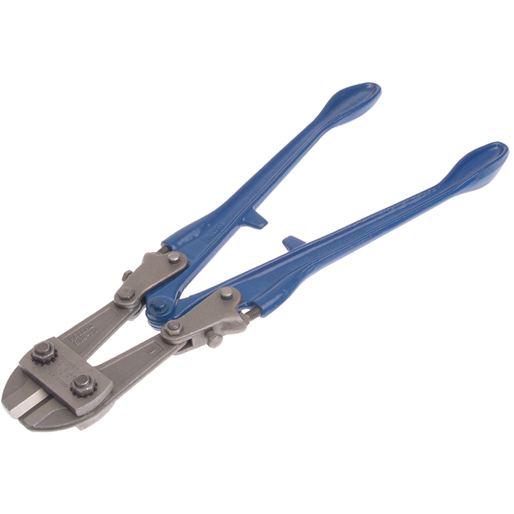 IRWIN Record Arm Adjusted High Tensile Bolt Cutters have jaws that are specially heat treated for cutting very hard materials up to a hardness of Brinell 500 (Rockwell C52, 110 tons/square in). The centre cut jaws have a short nose for trouble-free cutting of pre-stressed concrete reinforcing rods, mesh and wire, high tensile steel rods, bolts and case hardened chain, cold drawn alloy steel and tempered sprung wire.IRWIN Record 930H Arm Adjusted High Tensile Bolt Cutter 760mm (30 in).Overall Length: 760mm (30 in).Max Cutting Capacity: 9.5mm (3/8 in).