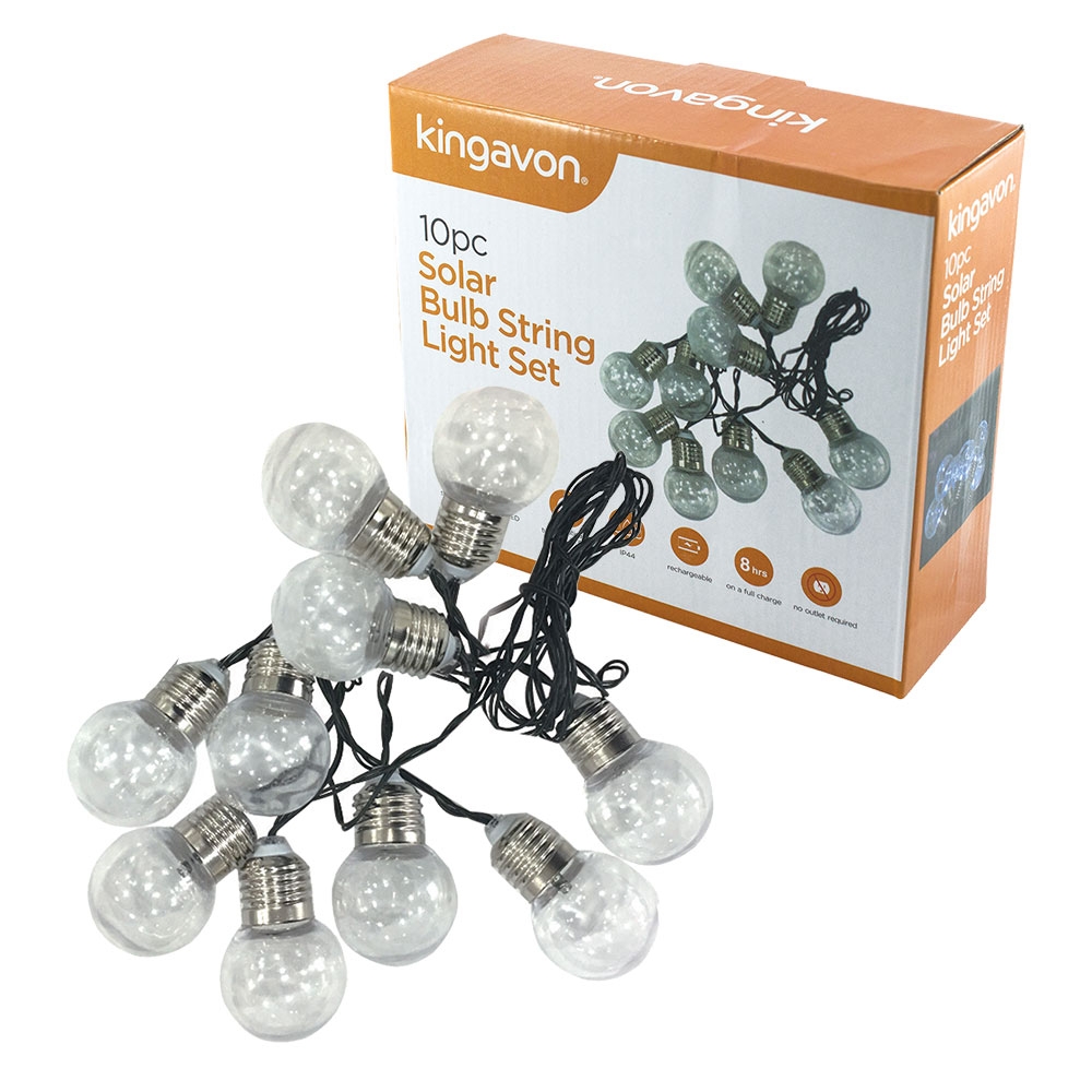 Kingavon 2 Mode Solar Charged 10x LED Bulb String Light Set – 2M Length