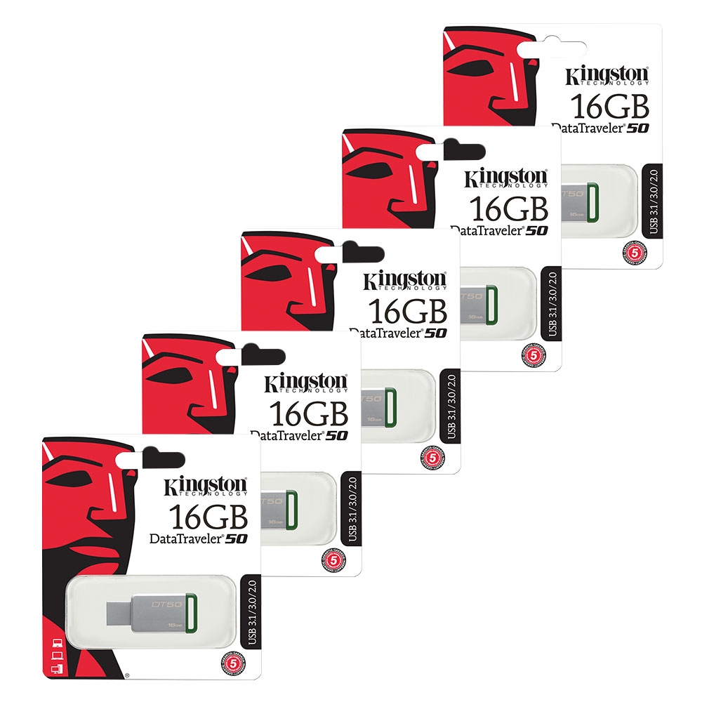 Kingston Data Traveler DT50 USB 3.1 Flash Drive USB 3.1 Memory Stick – 16GB – Value 5 Pack
