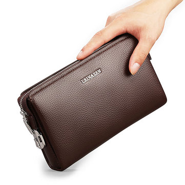 LEINASEN Safe Coded Lock Clutch Bag Genuine Leather 12 Card Holders Phone Bag For Men