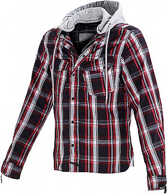 Kevlar reinforcement on the elbow, back and shoulder Side Eye boosts your visibility in the dark Safe Tech Protection on the shoulders and elbow Cotton inner lining back protection prepared Belt loop – prevents the jacket from creeping up when wearing a motorcycle jeans Detachable hood