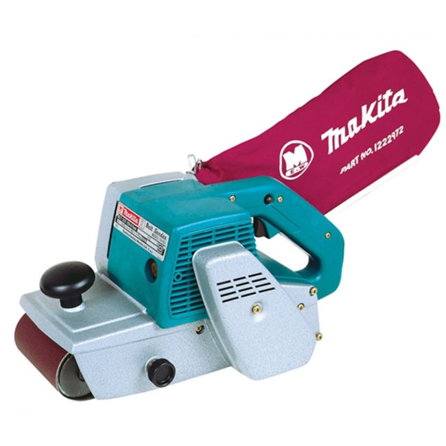 The Makita 9401 4″/100mm Super Duty Belt Sander is best used for flush-along-side sanding as well as open areas.Available in 110 or 240 volts.Features:An industry standard for over 25 yearsRugged and fastHighly-efficient dust collection system for clean work environmentLow center of gravity for superior handlingDouble insulated for added safetySpecification:Belt Size: 100x610mmBelt Speed: 350m/minPower rating: 1,040wNet Weight: 7.3kgAvailable in 110 and 240 voltsShipping Weight: 11kgIncludes:Carbon plateDust bag1 Abrasive beltStep (bench stand)