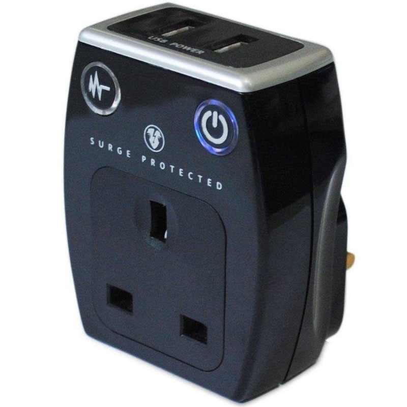 Masterplug Single Socket Surge Protected Power Adaptor with Two USB