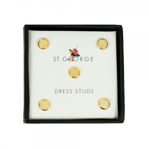 5 6mm Shirt Dress Studs Gold colour with Mother of Pearl inlay Presented in a gift box.