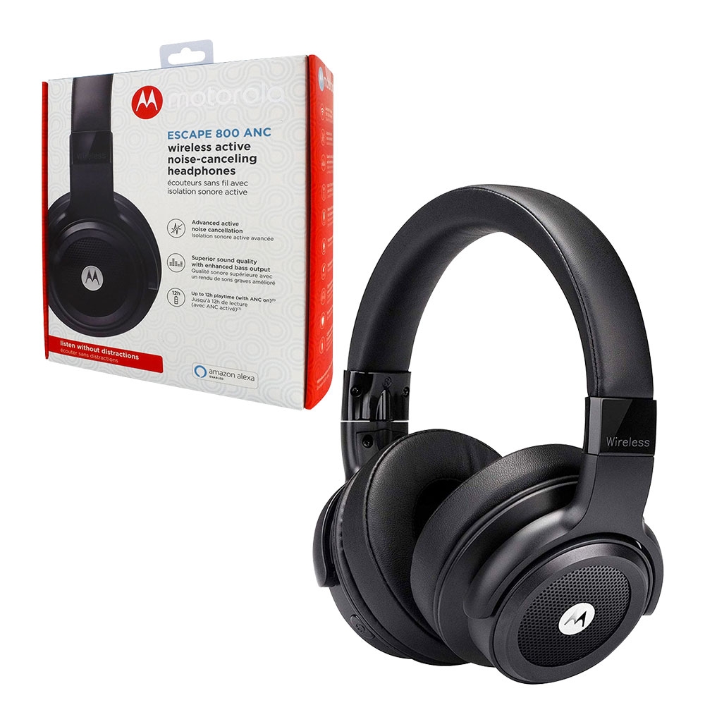 Motorola’s new Escape series over-ear wireless headphones are top quality, With Alexa, Siri & Google voice activation, top of the line ANC and 12 hours of play time, use at work, on the go or at home, escape from noise and distractions and simply enjoy high quality audio from any BT enabled device.Splashproof The Motorola 800 ANC headphones are splashproof, with a IPX4 rating, for when you are caught out in the rain.Superior sound quality The Motorola Escape 800 ANC headphones were created with superior sound quality and up to 12 hours of playtime, making them the perfect headphones for travelling. Plus, they’re designed with advanced active noise cancellation, so you can escape into your music.Siri, google now, and alexa compatible Users can download the Hubble Connect for Verve Life app to track and monitor their last connected location. The upgraded app is now integrated with Amazon Alexa, users can take command of a wide range of skills, from their mobile phones/tablets.Integrated mic for calls The Motorola Escape 800 ANC headphones come with an integrated mic to take calls hands-free. Specifications Condition: Brand New: Compatible with SKYPE, WhatsApp, VOIP and Siri, Google Now, and Alexa Built-in microphone etc. Bluetooth range: up to 12m Feed forward ANC Noise reduction: 18dB Built in rechargeable Li-Ion battery: 250mAh Play time: up to 12 hours on ANC mode Driver: 2 x 40mm with enhanced bass output Sensitivity: 118dB±2dB Frequency response: 20-20,000Hz 1-year warranty from Motorola Model number: MT-SH043BK Weight 264gWhats in The Box:Motorola Escape 800 ANC Wireless Active Noise Cancelling Bluetooth Headphones Hard Travel Case 3.5mm Jack Cable (may be connected direct to your devices if desired) USB to Micro USB Charge Cable