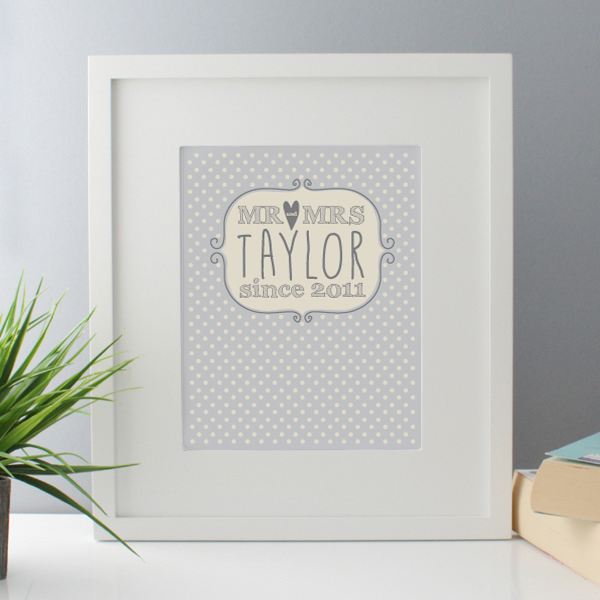 This adorable personalised Mr & Mrs print would make the perfect gift for any special couple celebrating their wedding day or an anniversary.
