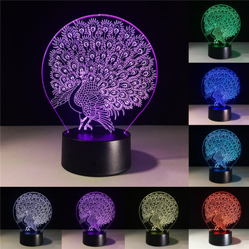Peacock 3D Acrylic LED Night light 7 Color Touch Desk Lamp Xmas Gift Living Room Home Decor