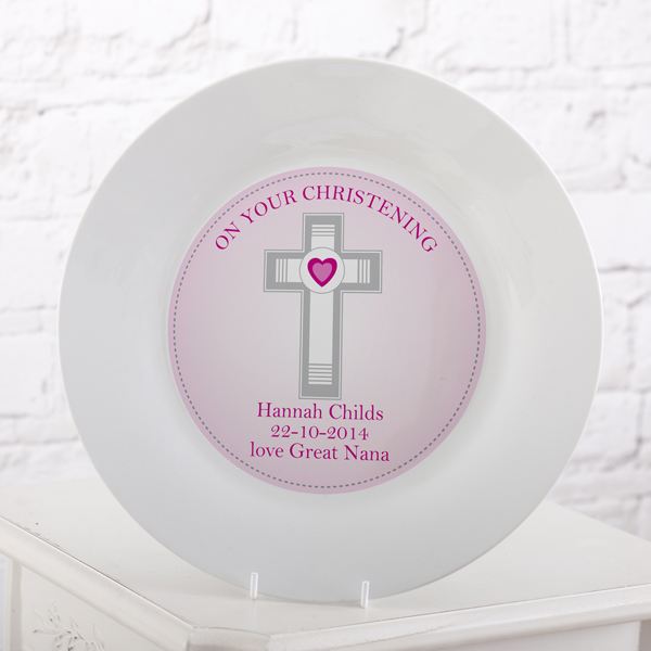 Beautiful personalised 16.5 cm diameter china Personalised Christening Plate. Makes a superb keepsake Christening gift.